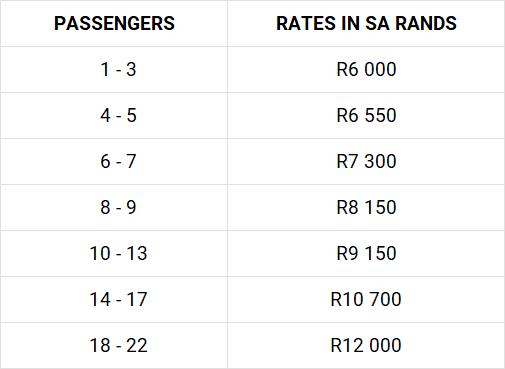 Price is strictly From: OR Tambo, Lanseria, Pretoria Sandton or Johannesburg.